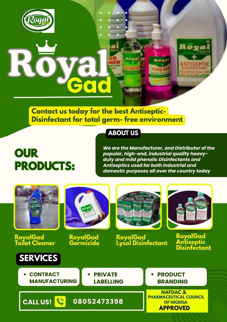 Providing high-quality, NAFDAC-registered disinfectants and antiseptics for industrial and domestic purposes nationwide.